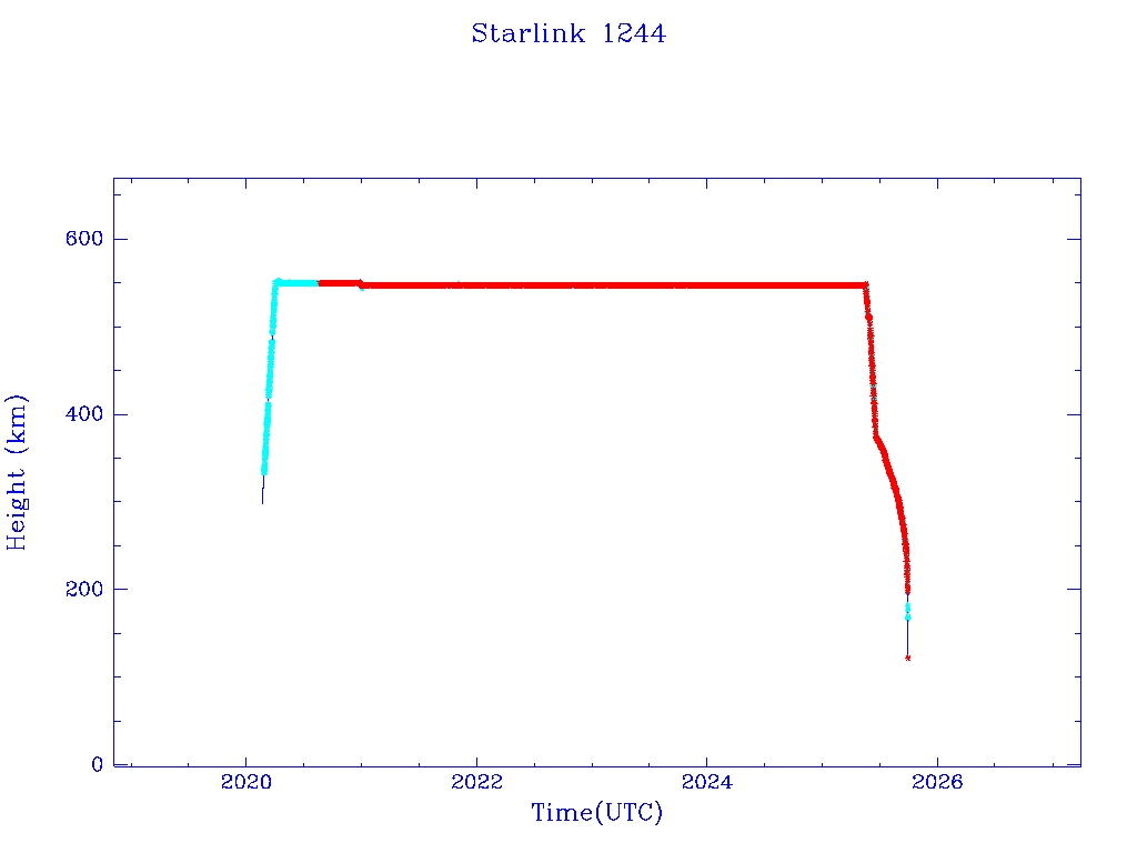 | Starlink 1244 | S45196 | R | 2020 Feb 17 | 2025 Jun 18? | 2025 Sep 27 |  |  |  |