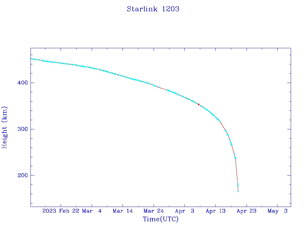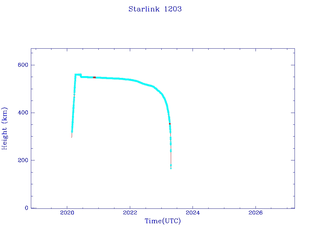 | Starlink 1203 | S45202 | M | 2020 Feb 17 | 2020 Jul 7? | 2023 Apr 20 |  |  |  |