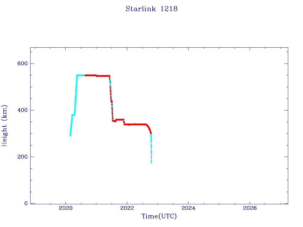 | Starlink 1218 | S45209 | R | 2020 Feb 17 | 2022 Oct 10 | 2022 Oct 15 |  |  |  |