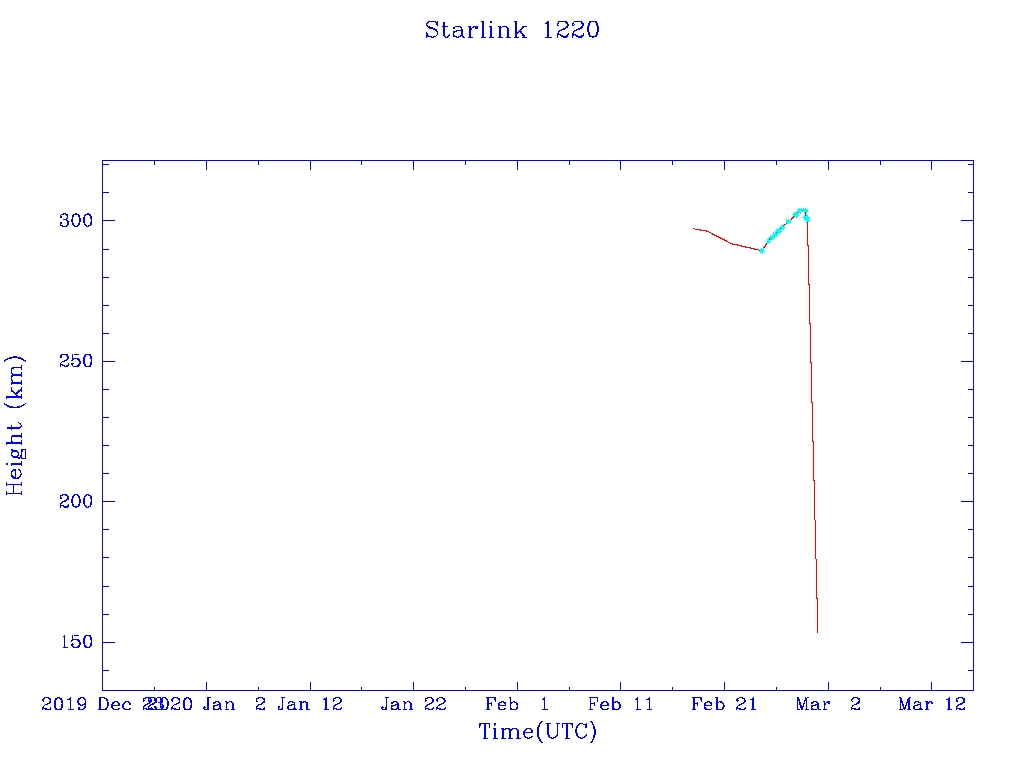 | Starlink 1220 | S45211 | F | 2020 Feb 17 | 2020 Feb 29 | 2020 Feb 28 |  |  |  |