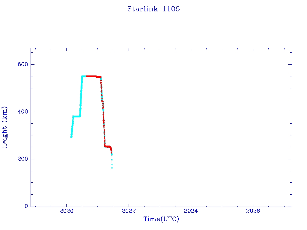 | Starlink 1105 | S45218 | R | 2020 Feb 17 | 2021 May 28 | 2021 Jun 16 |  |  |  |