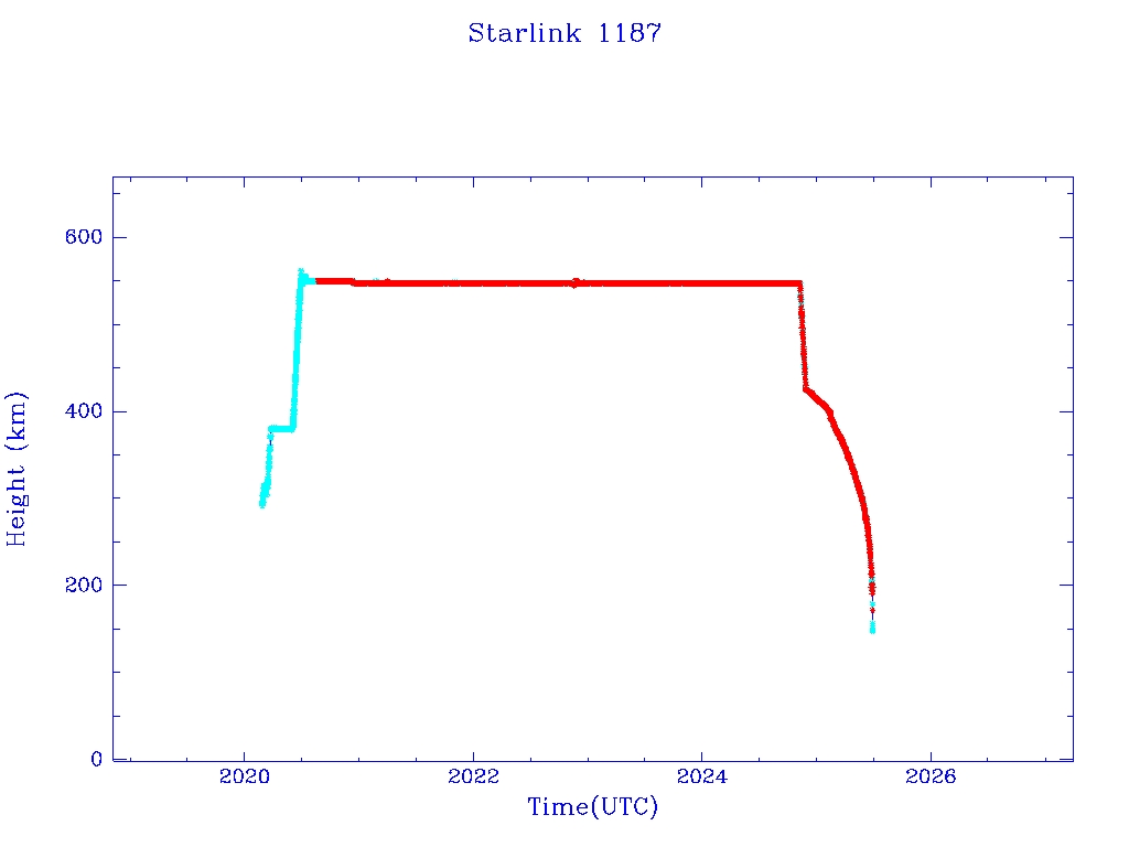 | Starlink 1187 | S45219 | R | 2020 Feb 17 | 2025 Feb 12 | 2025 Jun 27 |  |  |  |