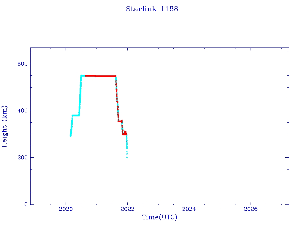 | Starlink 1188 | S45220 | R | 2020 Feb 17 | 2021 Dec 17? | 2021 Dec 24 |  |  |  |
