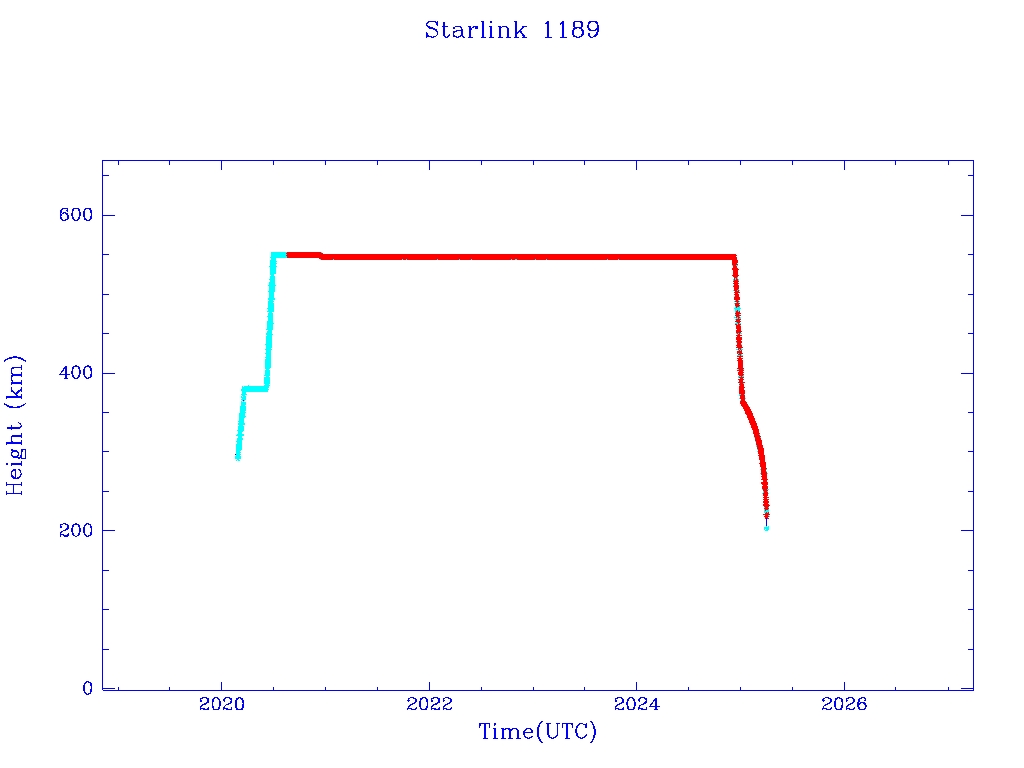 | Starlink 1189 | S45221 | R | 2020 Feb 17 | 2025 Jan 6? | 2025 Apr 1 |  |  |  |