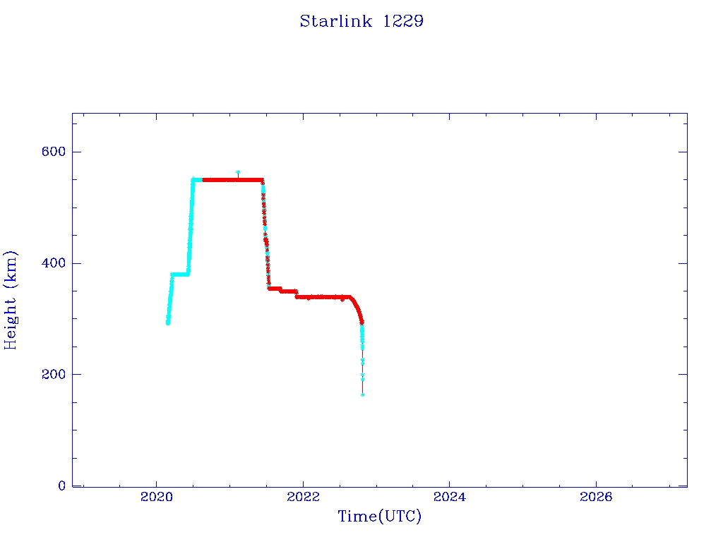 | Starlink 1229 | S45231 | R | 2020 Feb 17 | 2022 Oct 18 | 2022 Oct 23 |  |  |  |