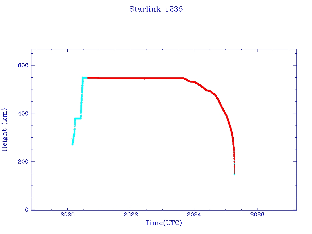 | Starlink 1235 | S45232 | M | 2020 Feb 17 | 2023 Aug 30 | 2025 Apr 10 |  |  |  |