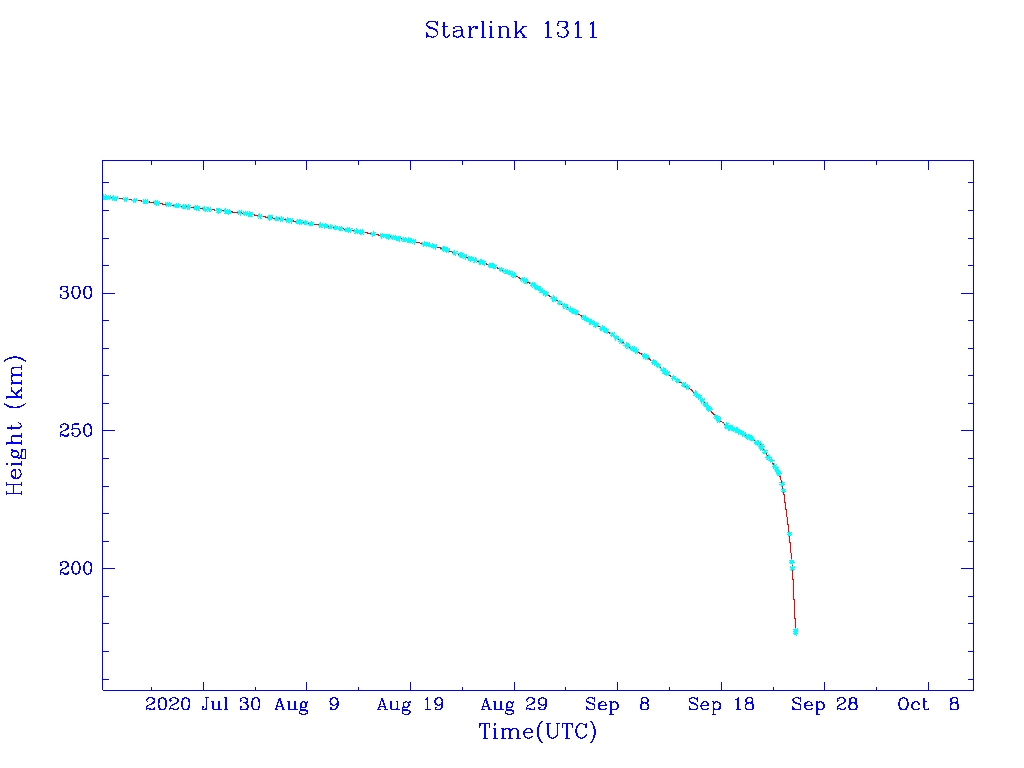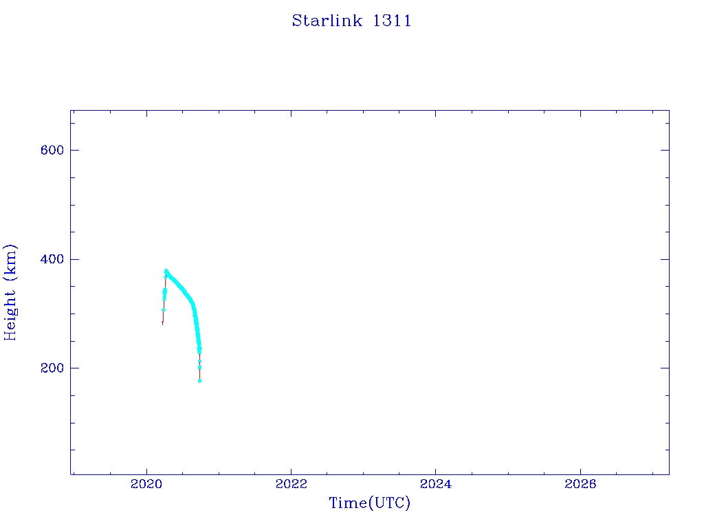 | Starlink 1311 | S45363 | F | 2020 Mar 18 | 2020 Apr 5? | 2020 Sep 25 |  |  |  |