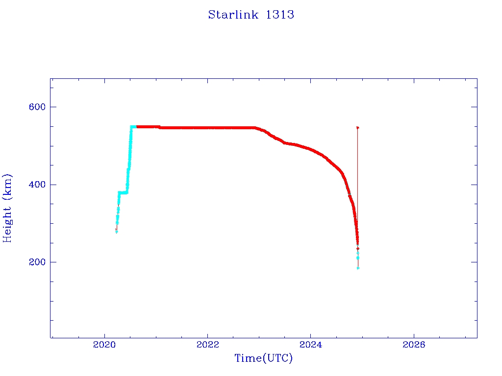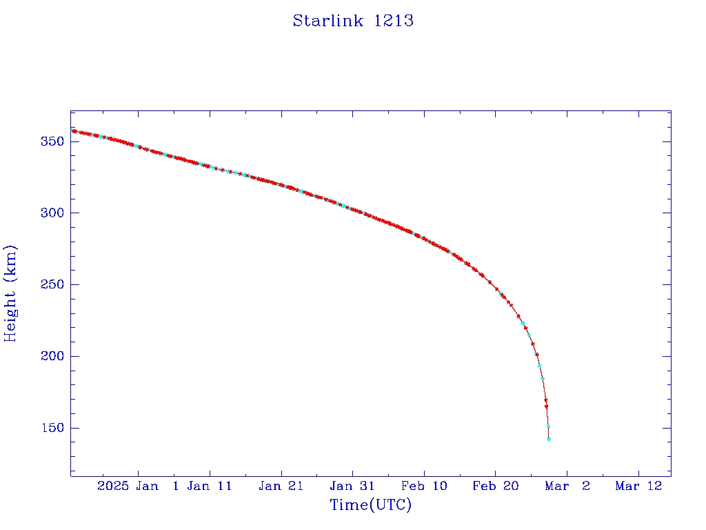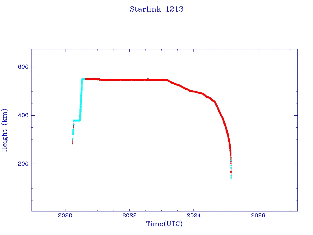 | Starlink 1213 | S45400 | M | 2020 Mar 18 | 2024 Nov 6 | 2025 Feb 27 |  |  |  |