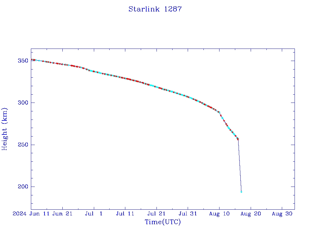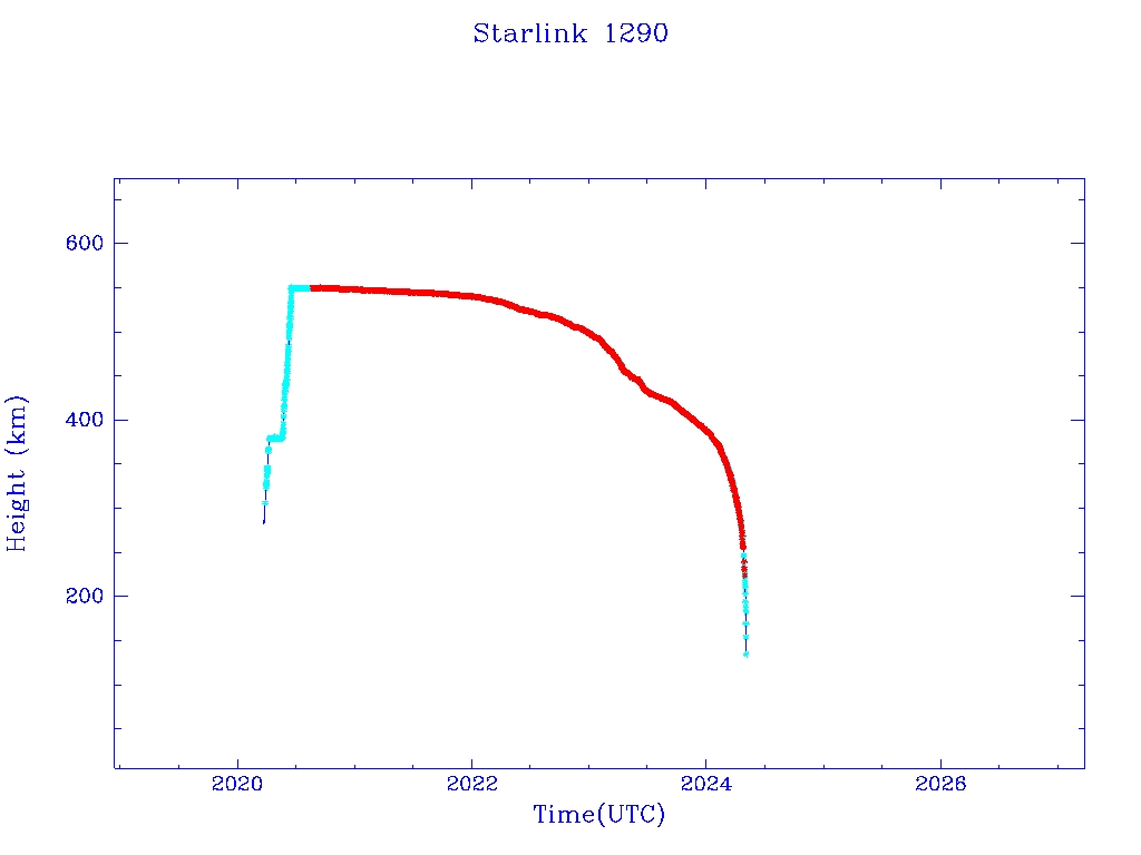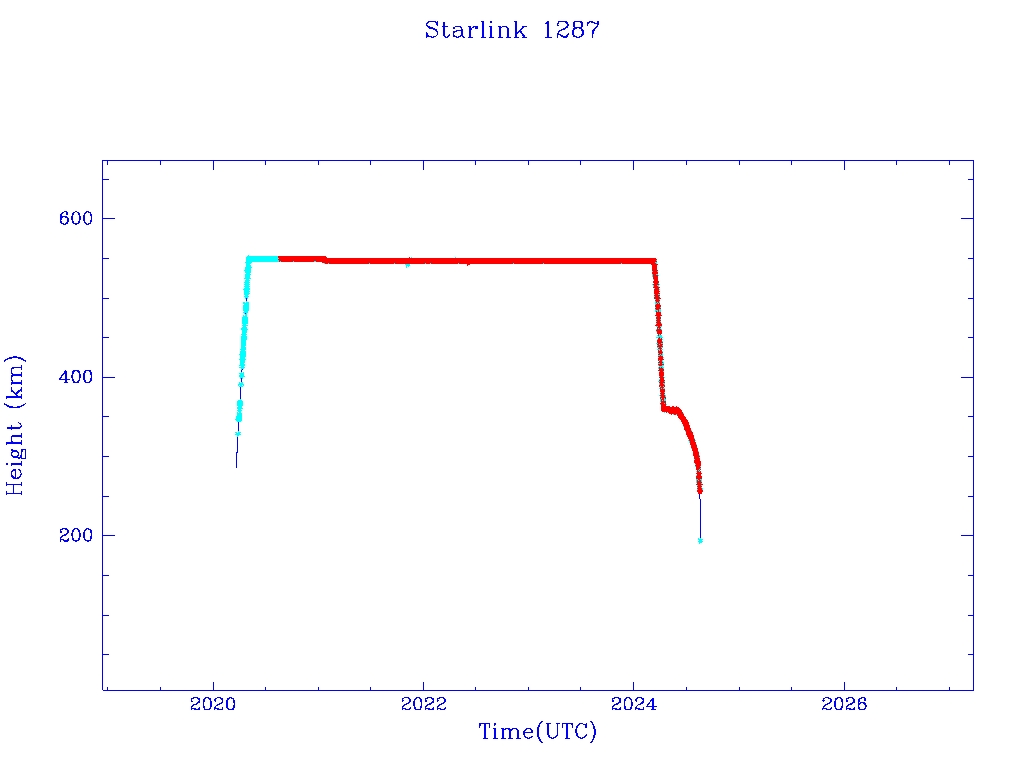 | Starlink 1287 | S45371 | R | 2020 Mar 18 | 2024 May 27? | 2024 Aug 17 |  |  |  |