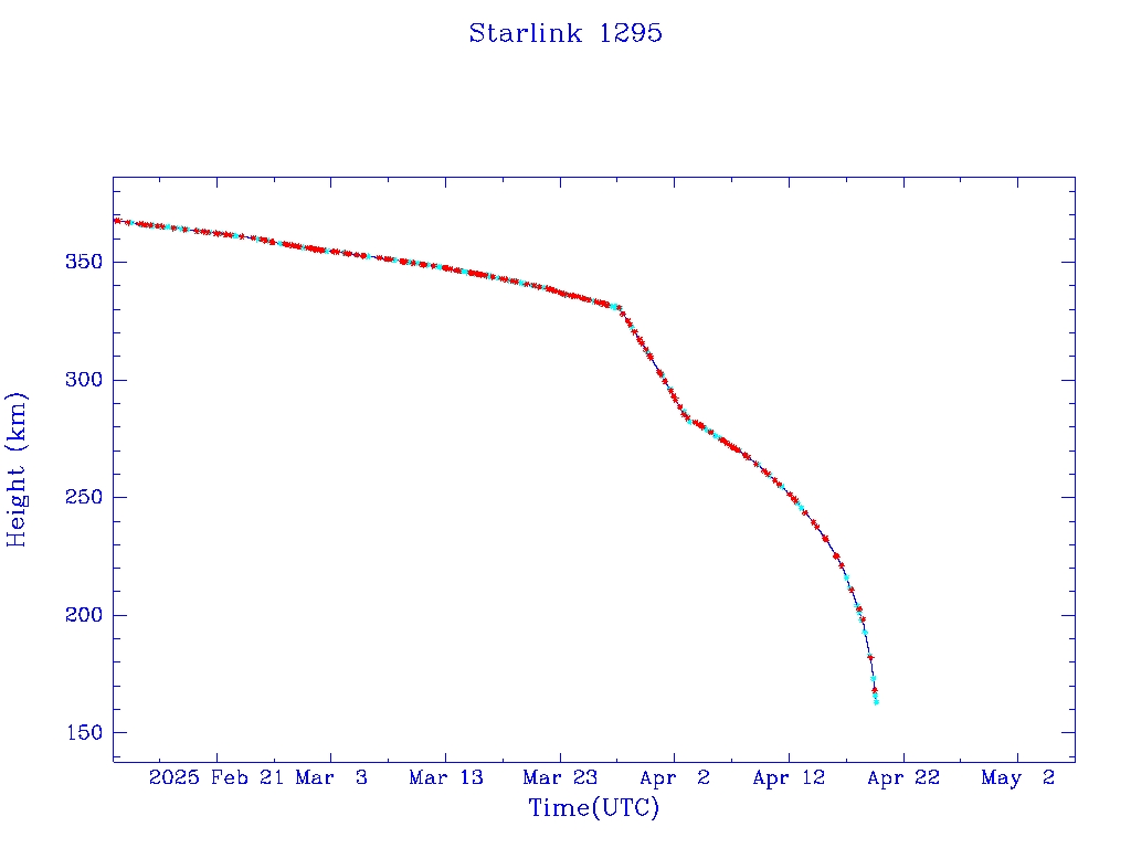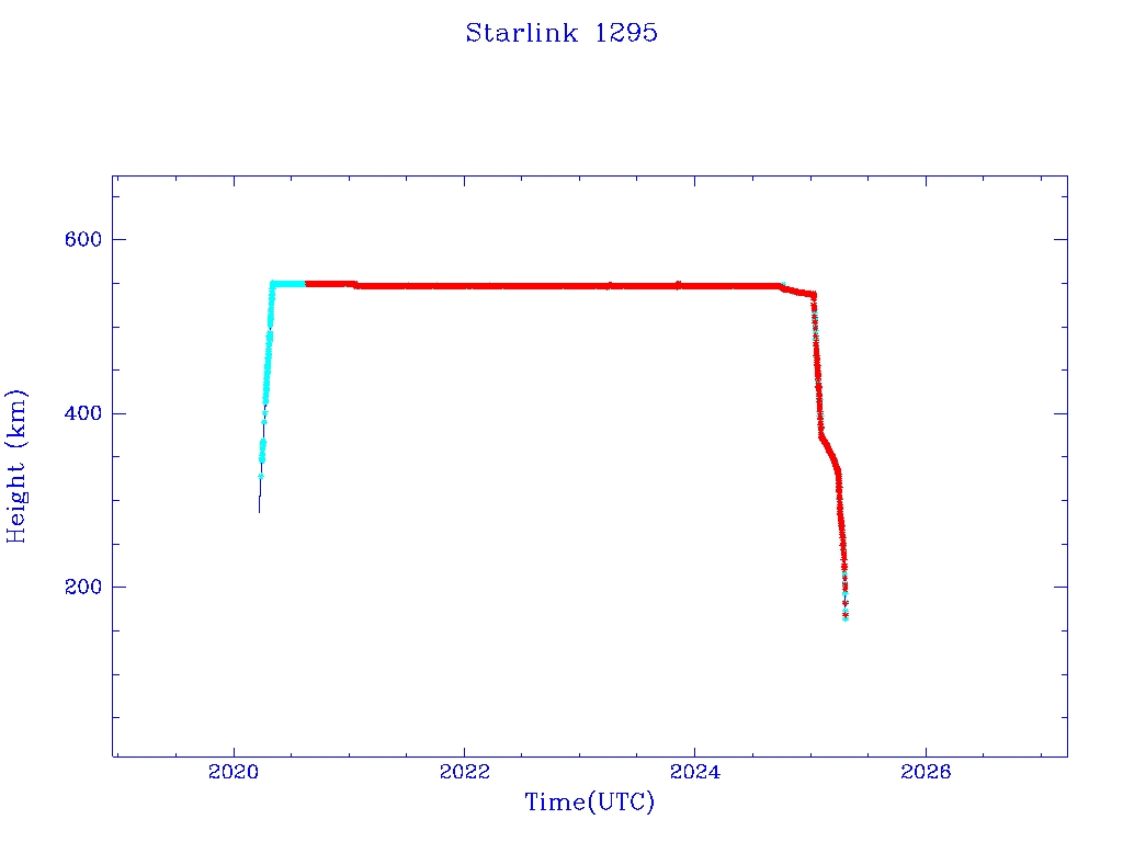 | Starlink 1295 | S45373 | R | 2020 Mar 18 | 2025 Apr 2? | 2025 Apr 19 |  |  |  |