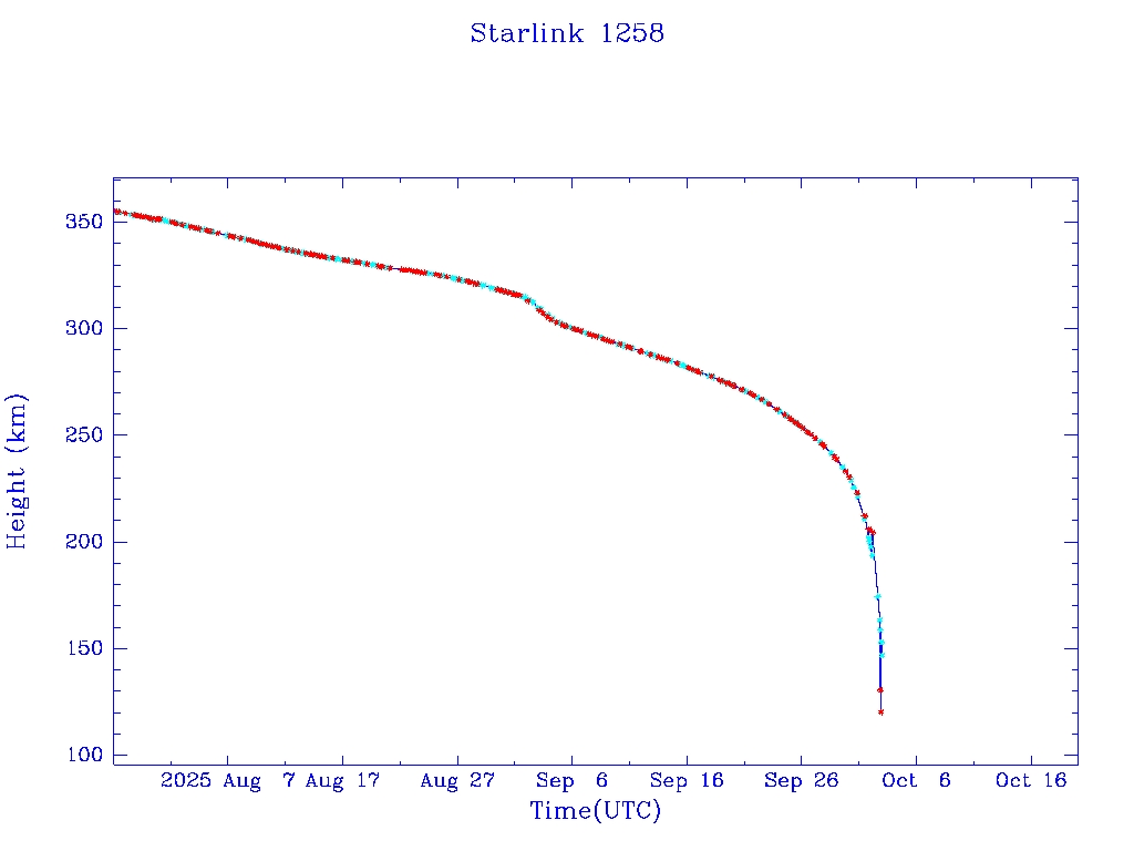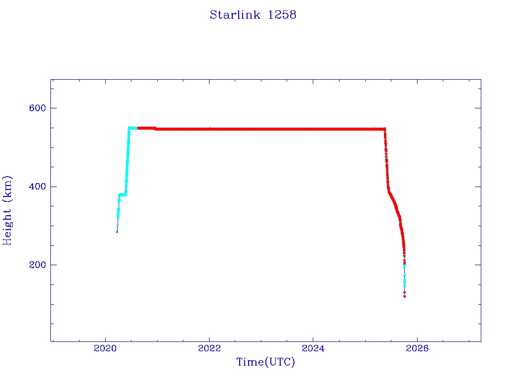 | Starlink 1258 | S45381 | R | 2020 Mar 18 | 2025 Jun 13? | 2025 Oct 3 |  |  |  |