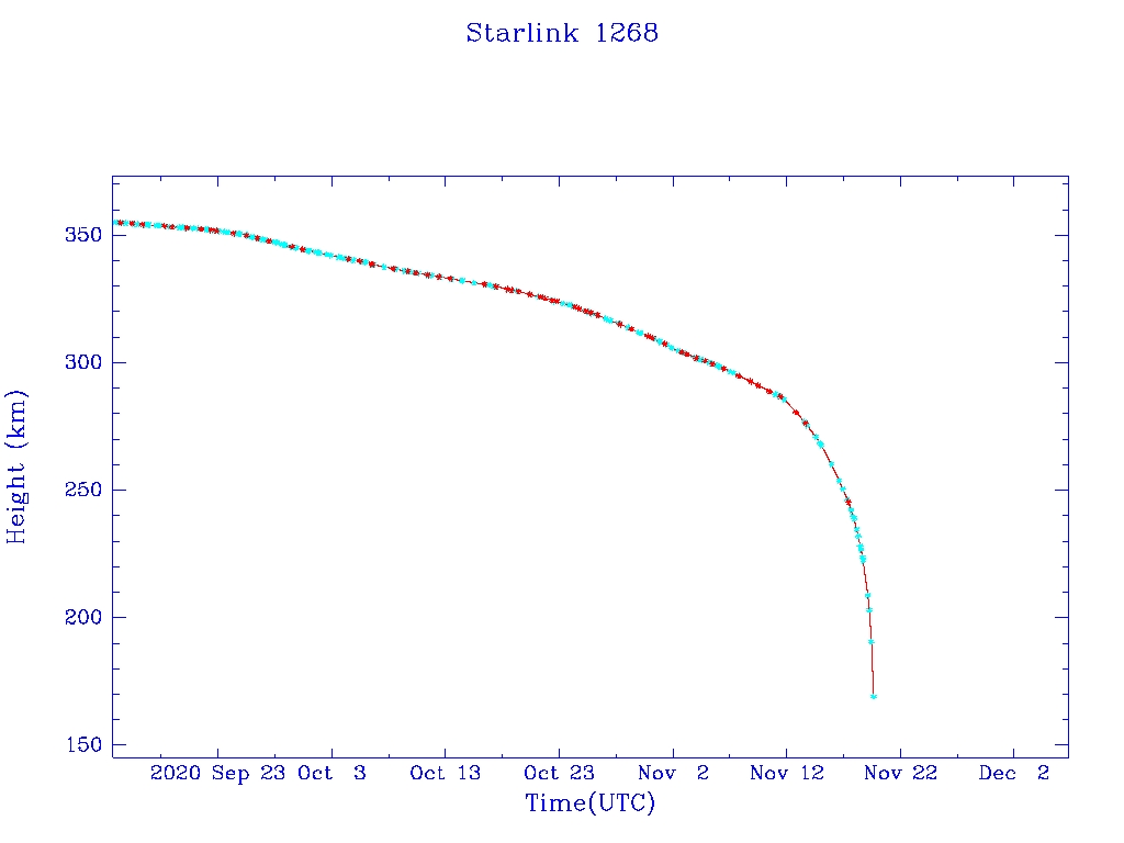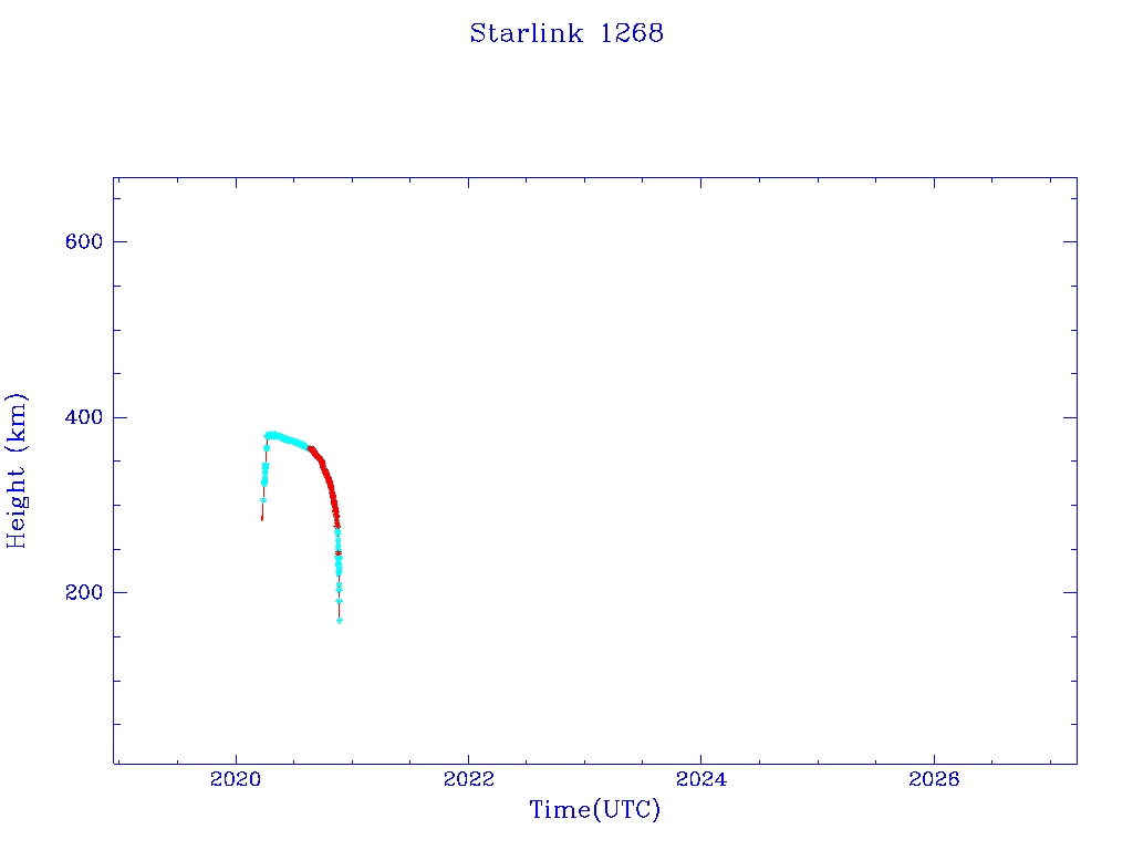 | Starlink 1268 | S45385 | F | 2020 Mar 18 | 2020 May 5? | 2020 Nov 19 |  |  |  |