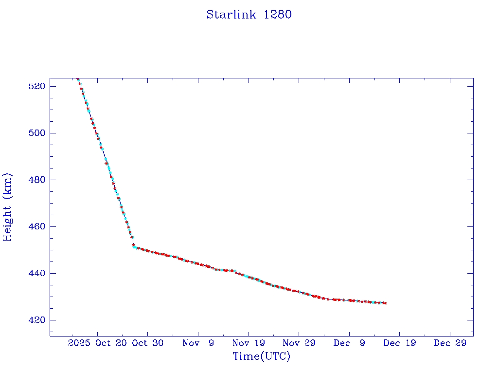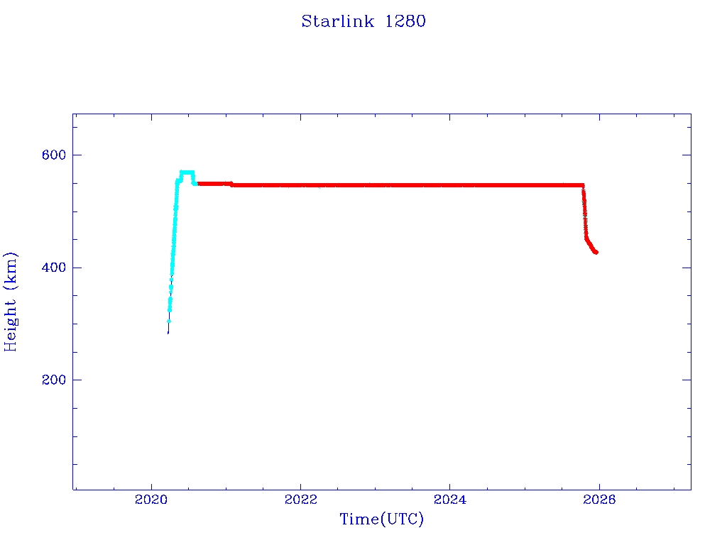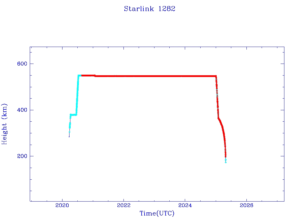 | Starlink 1282 | S45409 | R | 2020 Mar 18 | 2025 Jan 29? | 2025 Apr 26 |  |  |  |