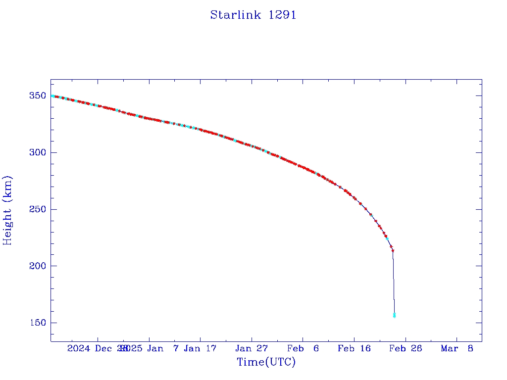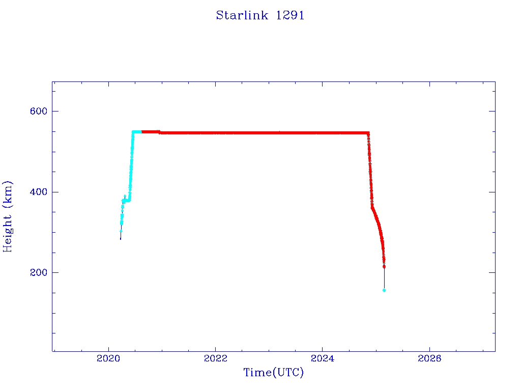 | Starlink 1291 | S45393 | R | 2020 Mar 18 | 2024 Dec 4? | 2025 Feb 23 |  |  |  |