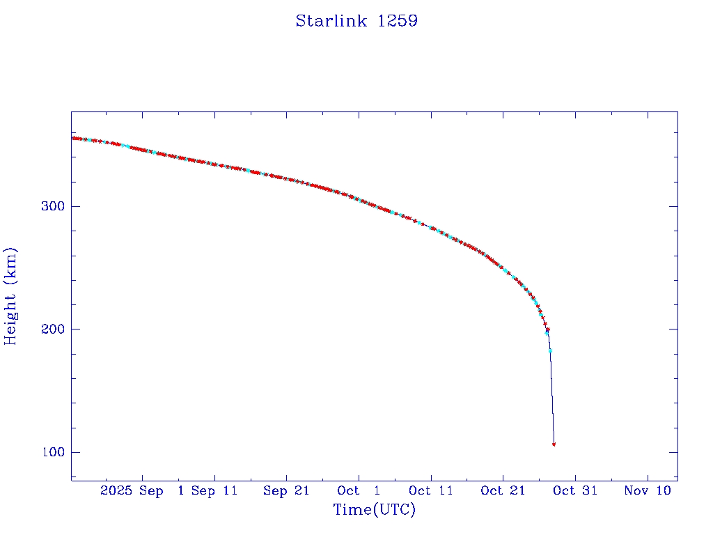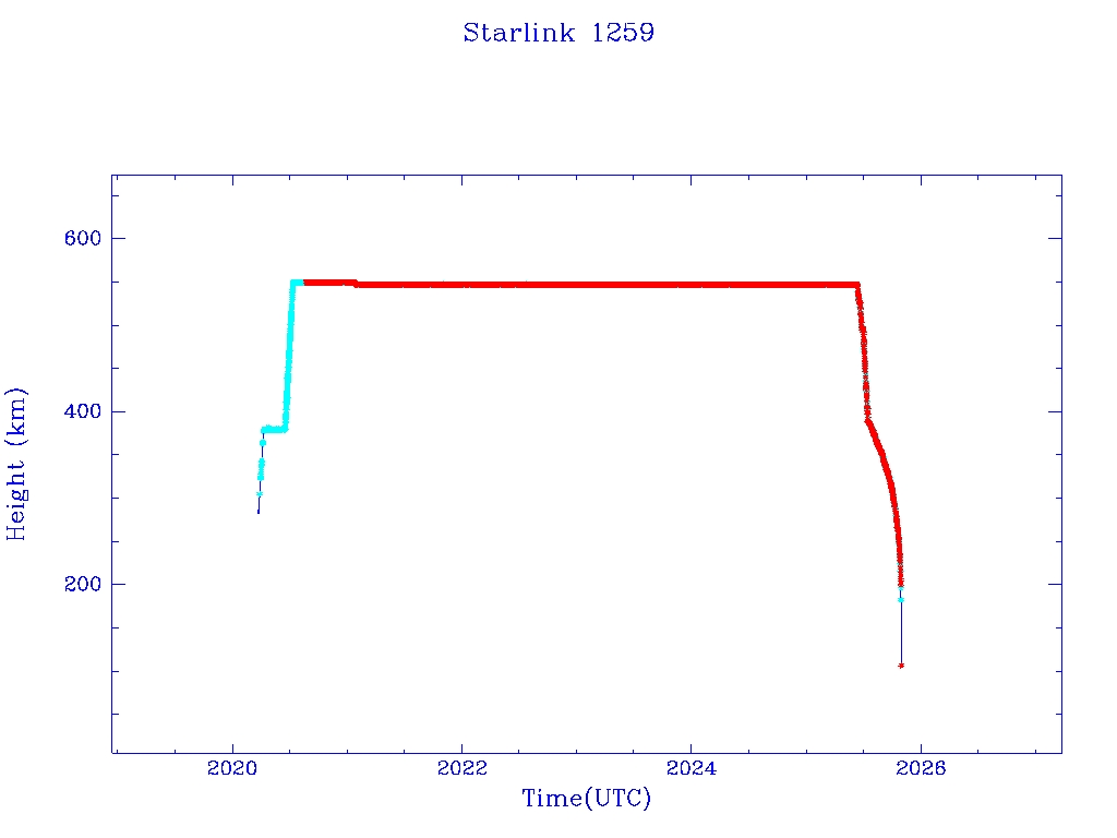 | Starlink 1259 | S45403 | R | 2020 Mar 18 | 2025 Jul 15? | 2025 Oct 28 |  |  |  |