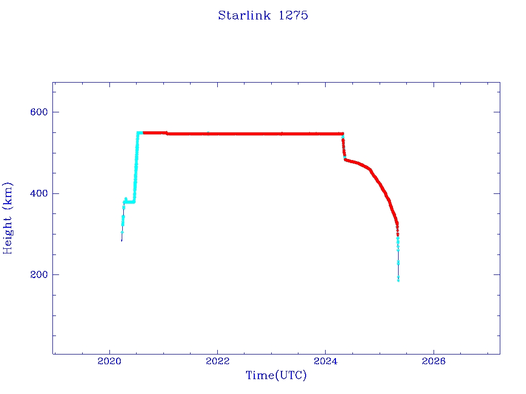 | Starlink 1275 | S45407 | R | 2020 Mar 18 | 2025 May 1? | 2025 Jan 5 |  |  |  |
