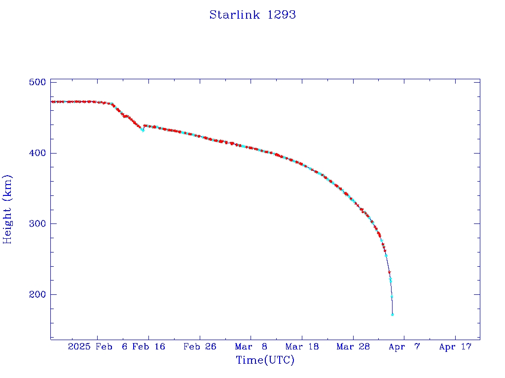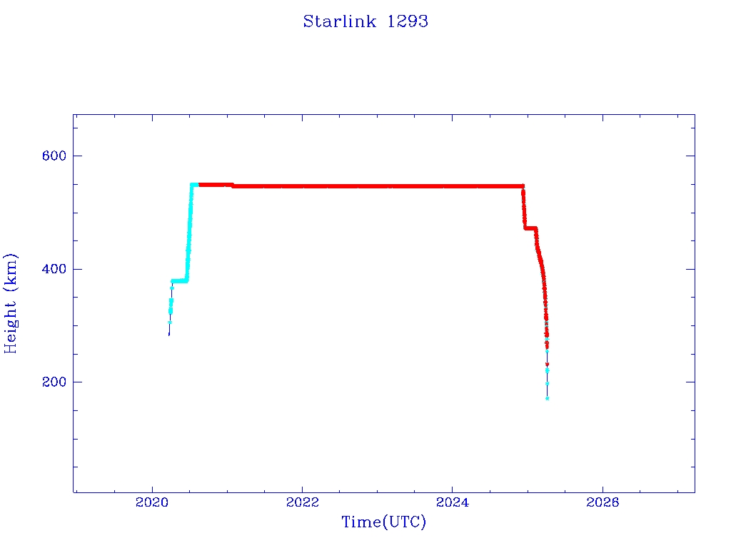 | Starlink 1293 | S45411 | R | 2020 Mar 18 | 2025 Feb 15 | 2025 Apr 4 |  |  |  |