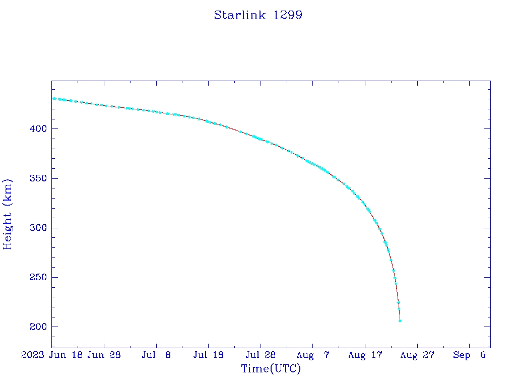 | Starlink 1299 | S45418 | M | 2020 Mar 18 | 2020 Jul 6? | 2023 Aug 24 |  |  |  |