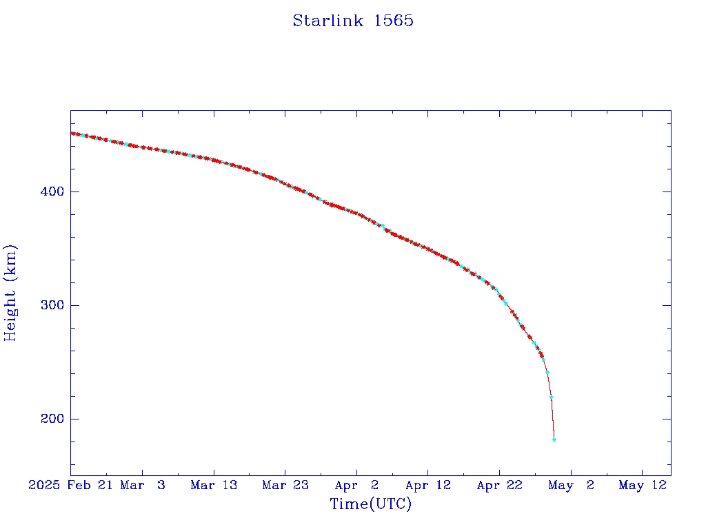 | Starlink 1565 | S46037 | M | 2020 Aug 7 | 2024 Sep 19? | 2025 Apr 29 |  |  |  |