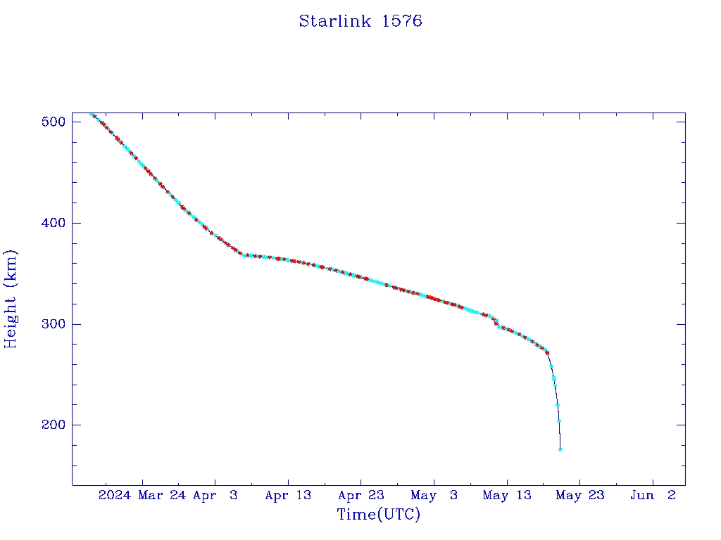 | Starlink 1576 | S46040 | R | 2020 Aug 7 | 2024 May 18 | 2024 May 20 |  |  |  |