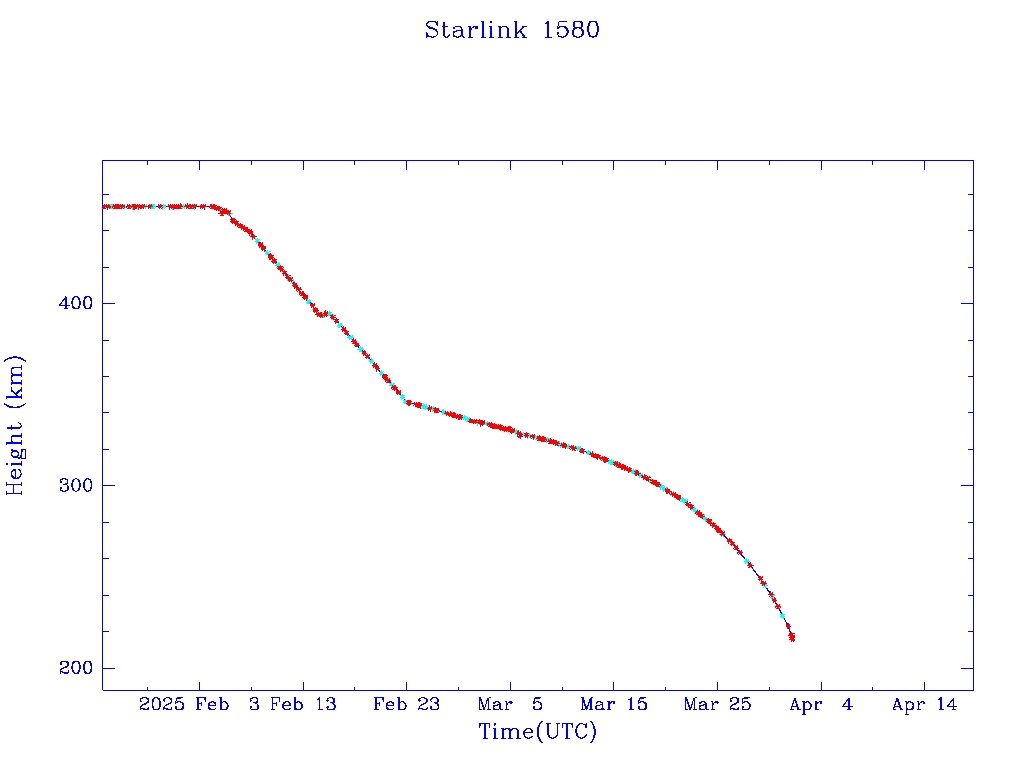 | Starlink 1580 | S46041 | R | 2020 Aug 7 | 2025 Feb 22? | 2025 Apr 1 |  |  |  |