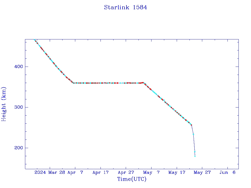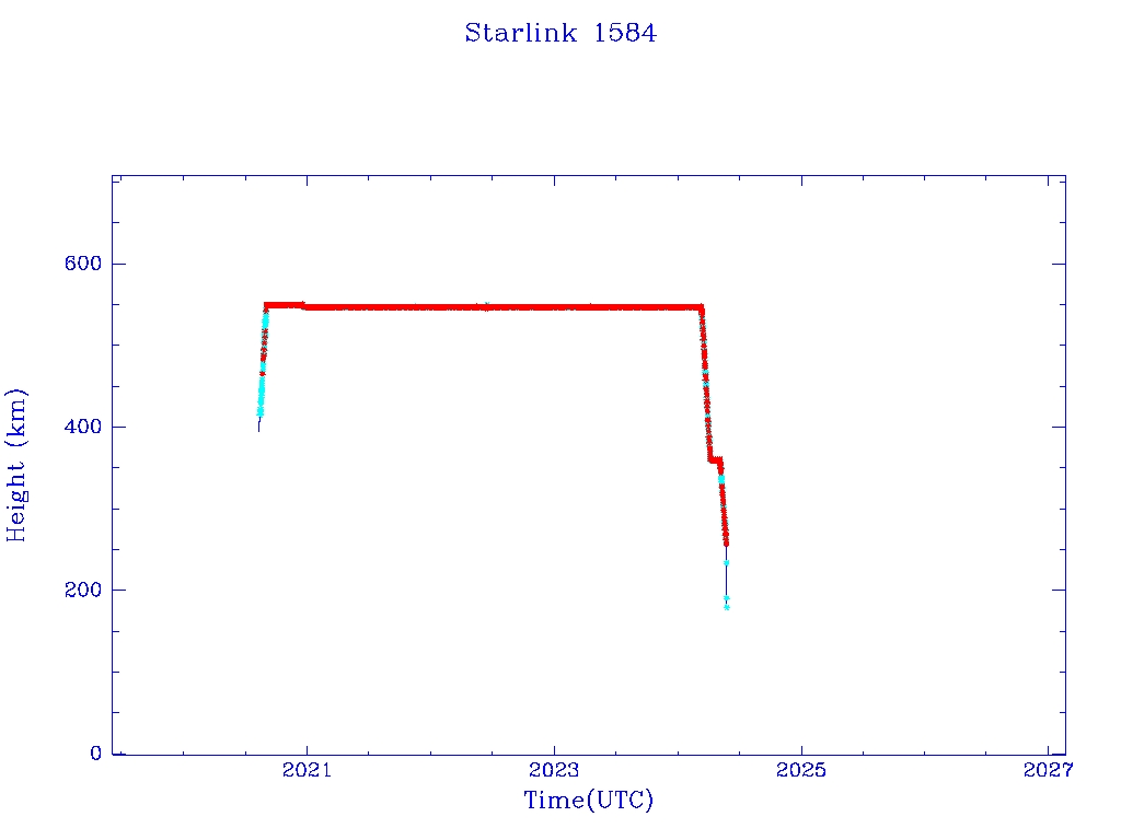 | Starlink 1584 | S46044 | R | 2020 Aug 7 | 2024 May 22 | 2024 May 24 |  |  |  |