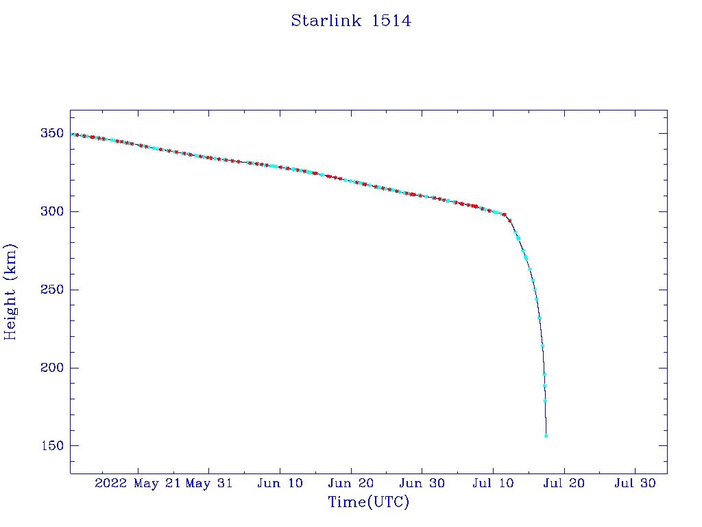 | Starlink 1514 | S46046 | R | 2020 Aug 7 | 2022 Jul 11 | 2022 Jul 17 |  |  |  |