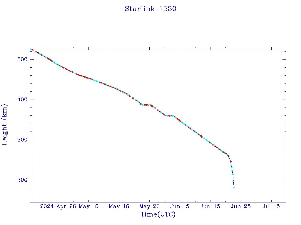 | Starlink 1530 | S46049 | R | 2020 Aug 7 | 2024 Jun 21 | 2024 Jun 22 |  |  |  |