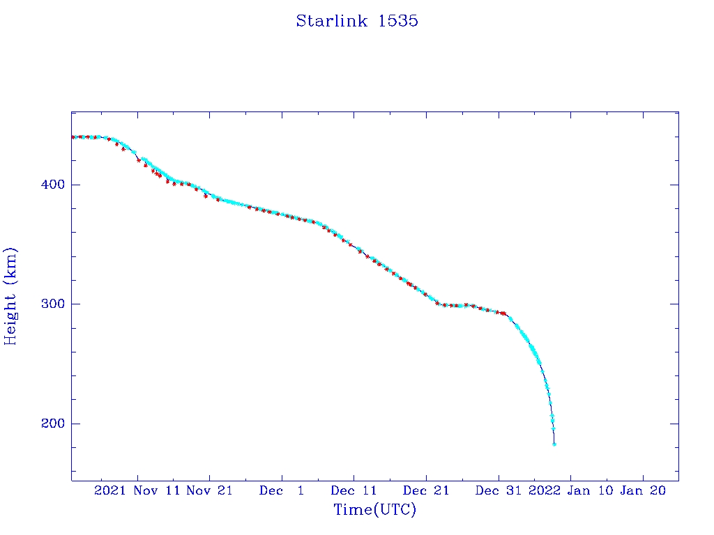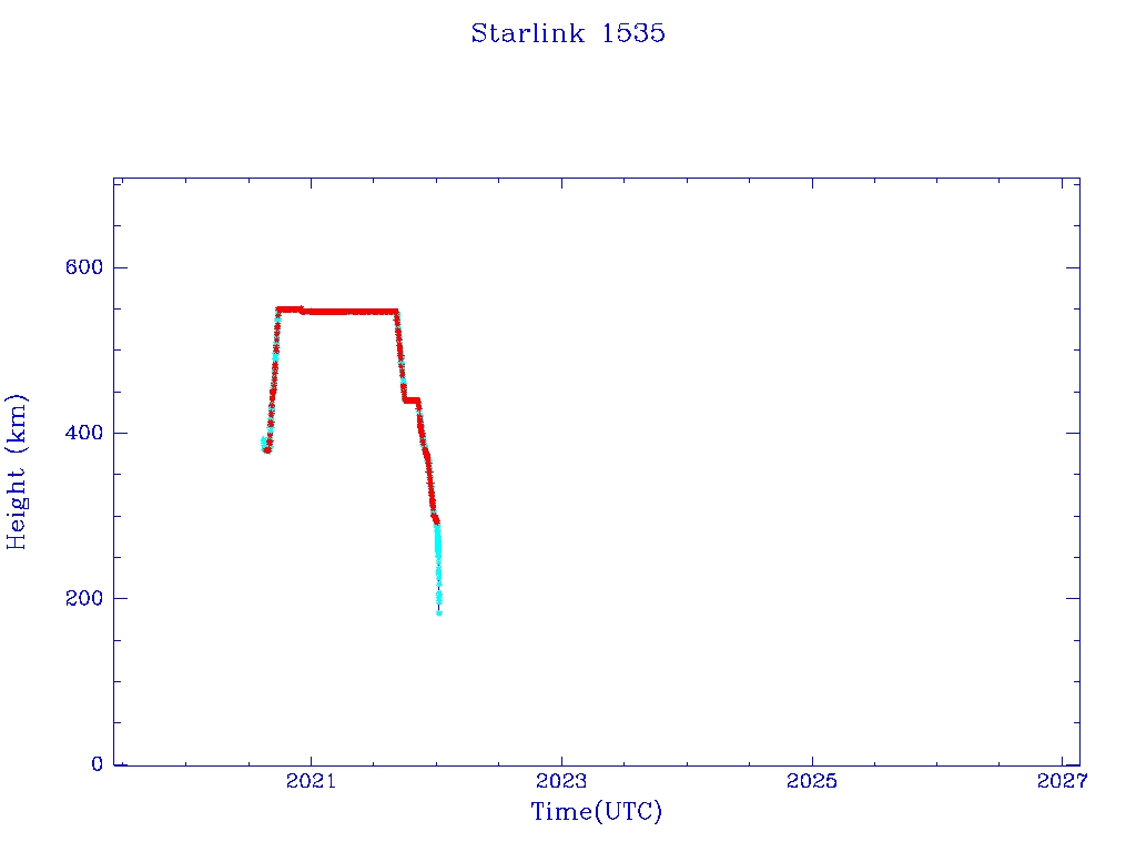 | Starlink 1535 | S46050 | R | 2020 Aug 7 | 2021 Dec 28? | 2022 Jan 7 |  |  |  |