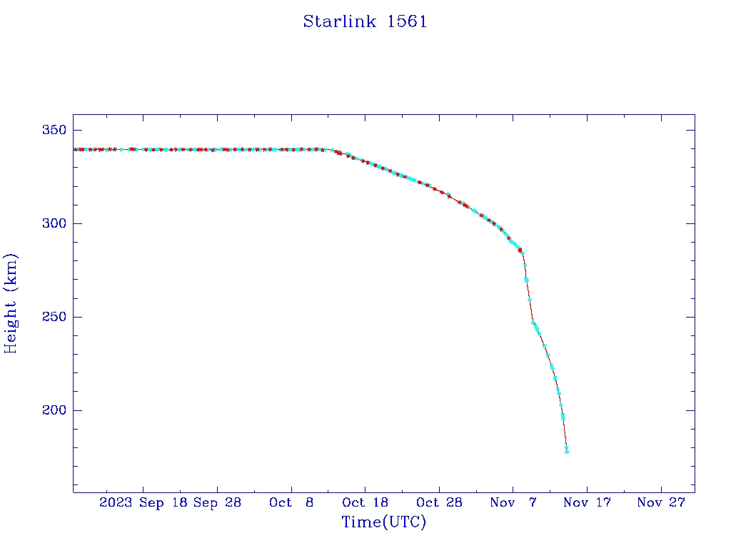 | Starlink 1561 | S46056 | R | 2020 Aug 7 | 2023 Nov 7? | 2023 Nov 14 |  |  |  |