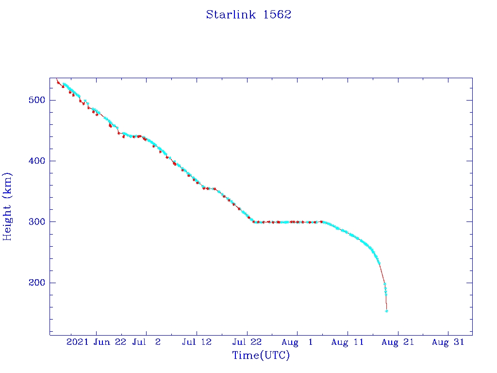 | Starlink 1562 | S46057 | R | 2020 Aug 7 | 2021 Aug 6? | 2021 Aug 18 |  |  |  |