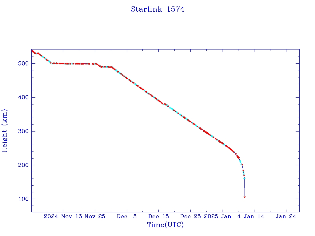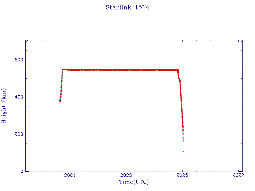 | Starlink 1574 | S46062 | R | 2020 Aug 7 | 2025 Jan 6? | 2025 Jan 11 |  |  |  |