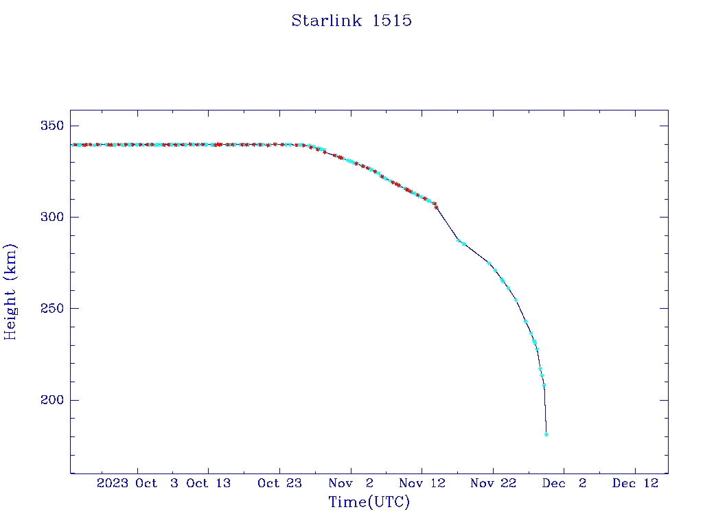 | Starlink 1515 | S46065 | R | 2020 Aug 7 | 2023 Nov 17 | 2023 Nov 29 |  |  |  |