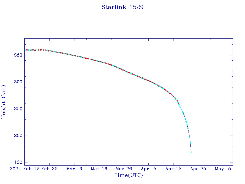 | Starlink 1529 | S46067 | R | 2020 Aug 7 | 2024 Feb 24 | 2024 Apr 22 |  |  |  |