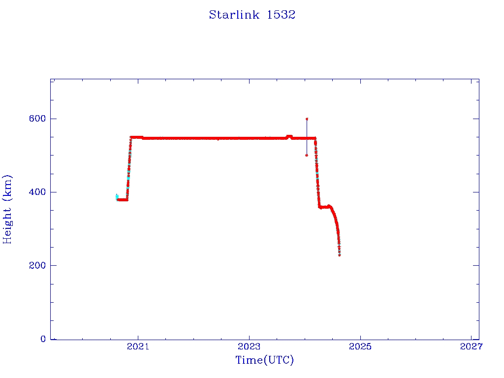 | Starlink 1532 | S46068 | R | 2020 Aug 7 | 2024 Jun 19 | 2024 Aug 16 |  |  |  |