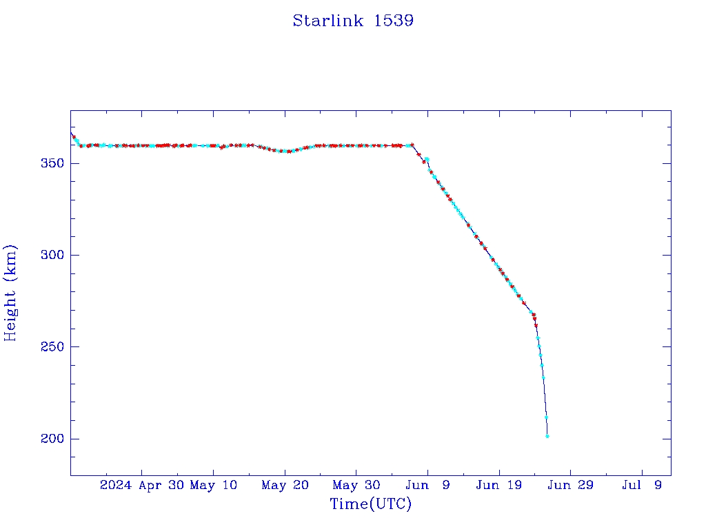 | Starlink 1539 | S46072 | R | 2020 Aug 7 | 2024 Jun 23? | 2024 Jun 26 |  |  |  |