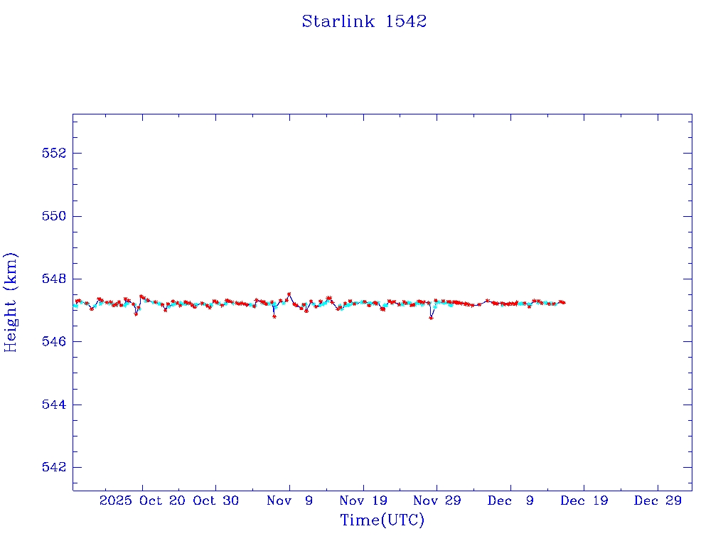 | Starlink 1542 | S46073 | O | 2020 Aug 7 | * | - |  |  |  |