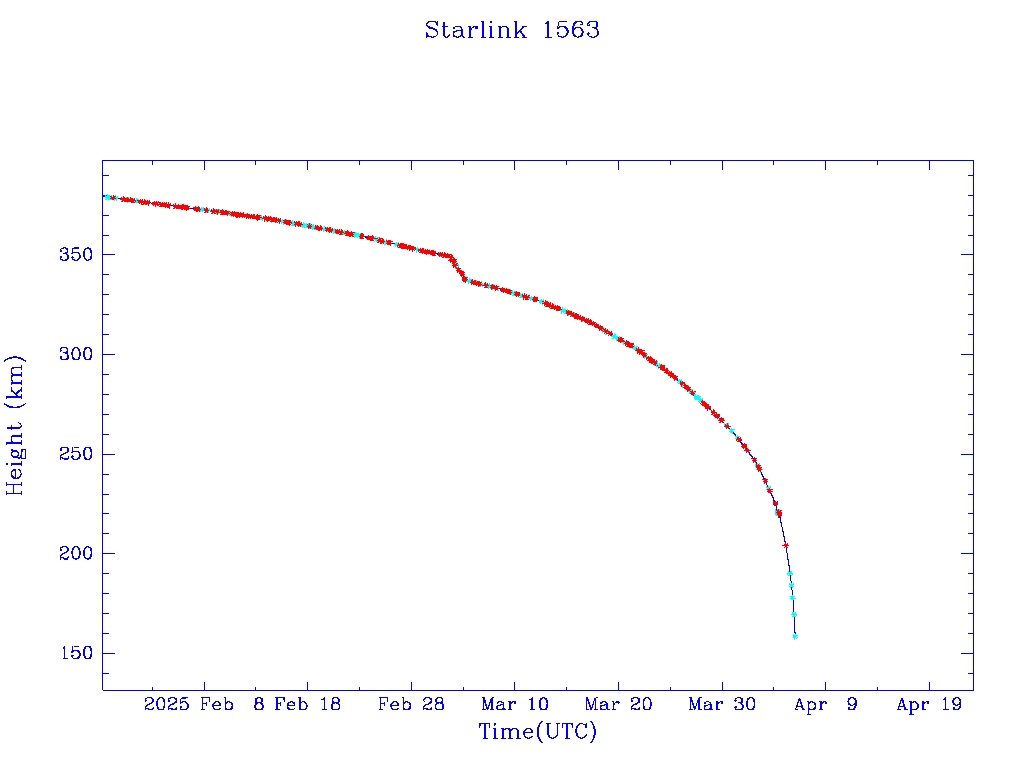 | Starlink 1563 | S46078 | R | 2020 Aug 7 | 2025 Jan 20 | 2025 Apr 6 |  |  |  |