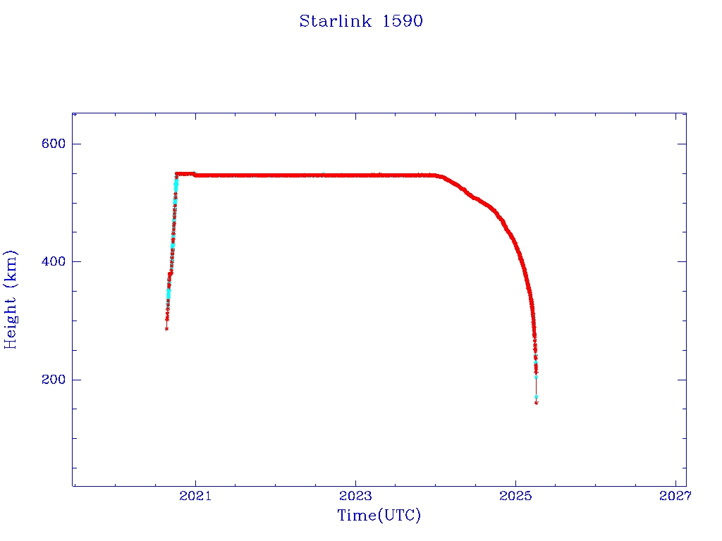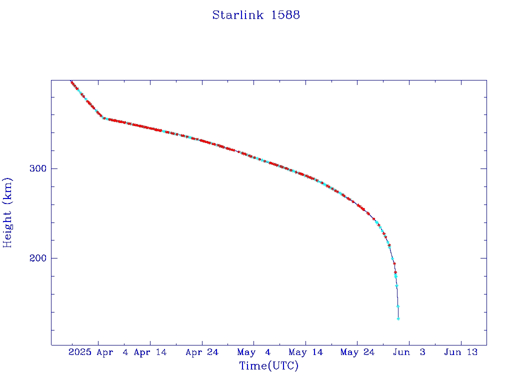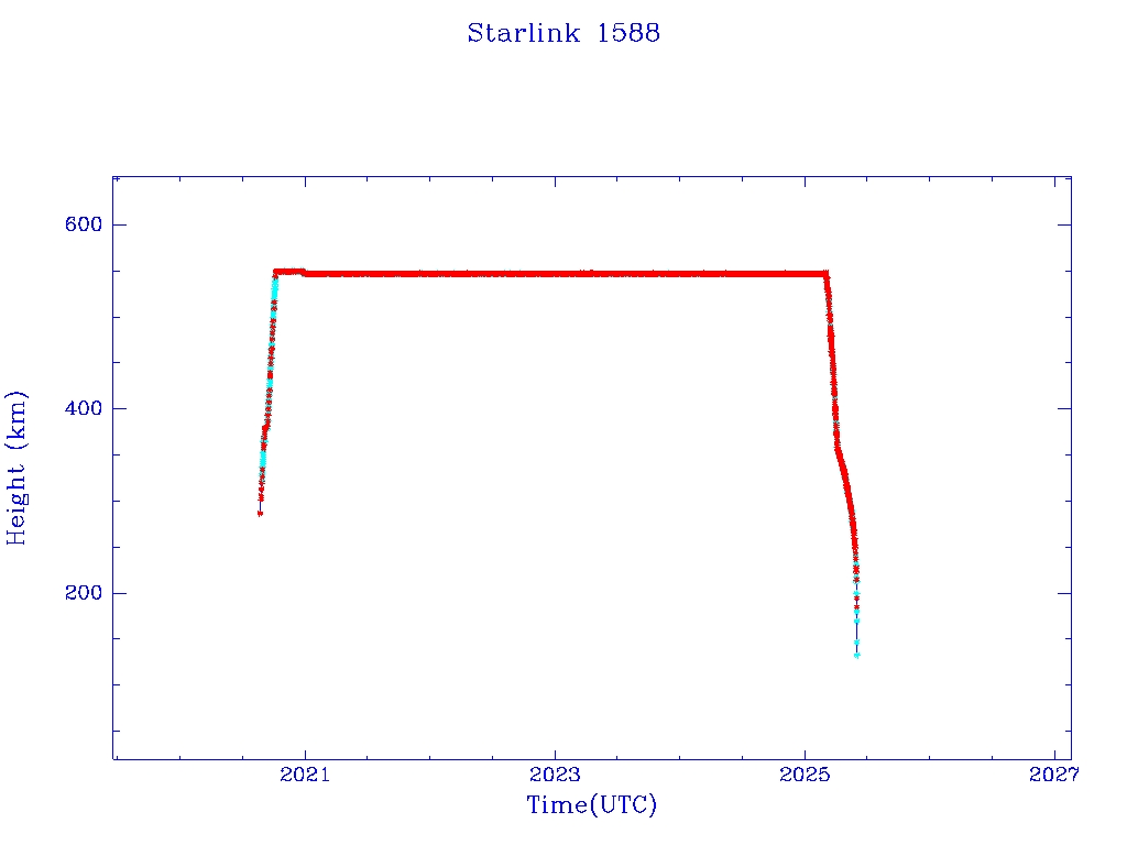 | Starlink 1588 | S46118 | R | 2020 Aug 18 | 2025 Apr 5 | 2025 May 31 |  |  |  |