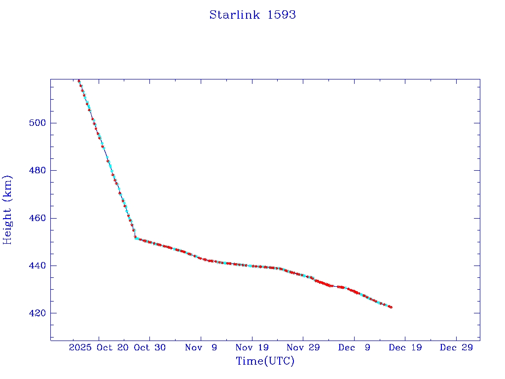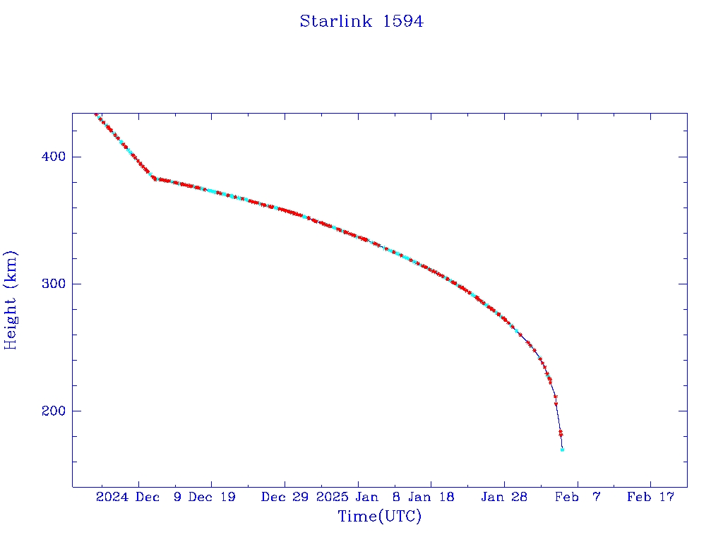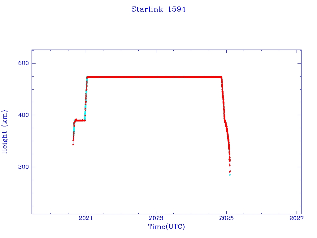| Starlink 1594 | S46140 | R | 2020 Aug 18 | 2024 Dec 10? | 2025 Feb 4 |  |  |  |