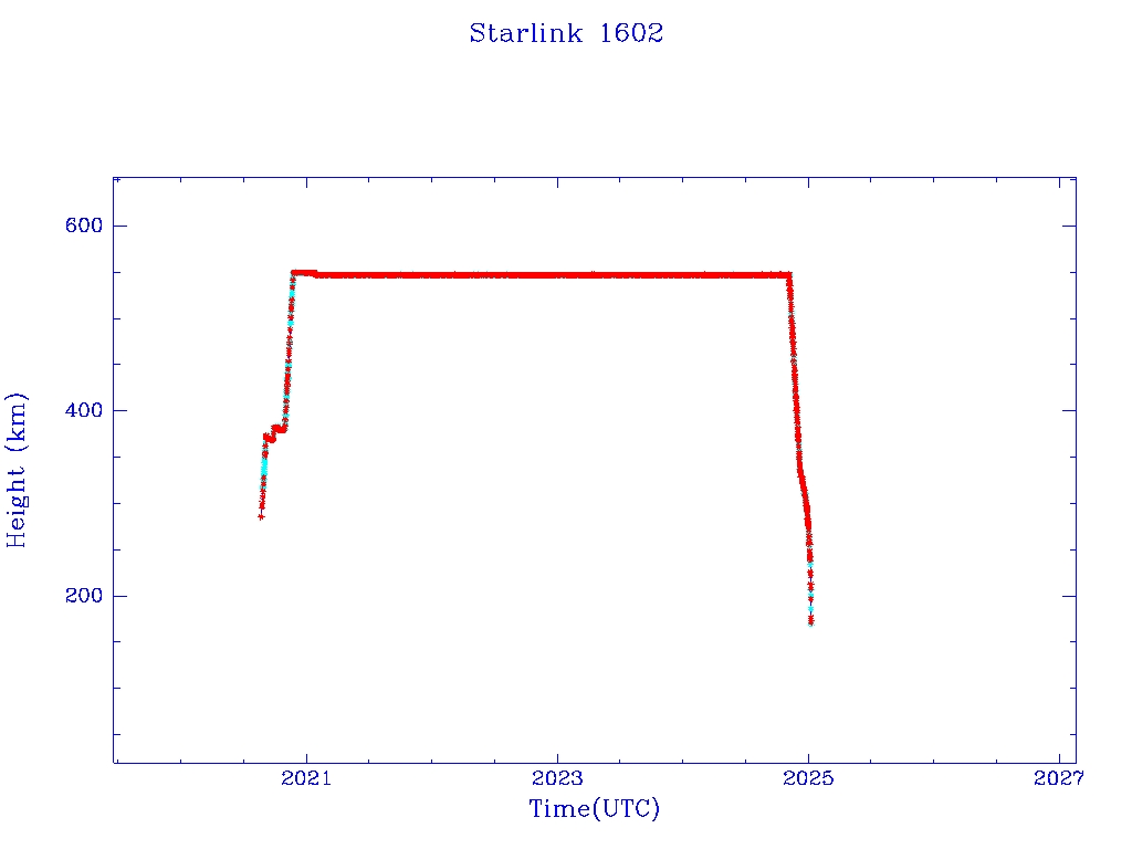 | Starlink 1602 | S46121 | R | 2020 Aug 18 | 2024 Dec 6? | 2025 Jan 7 |  |  |  |