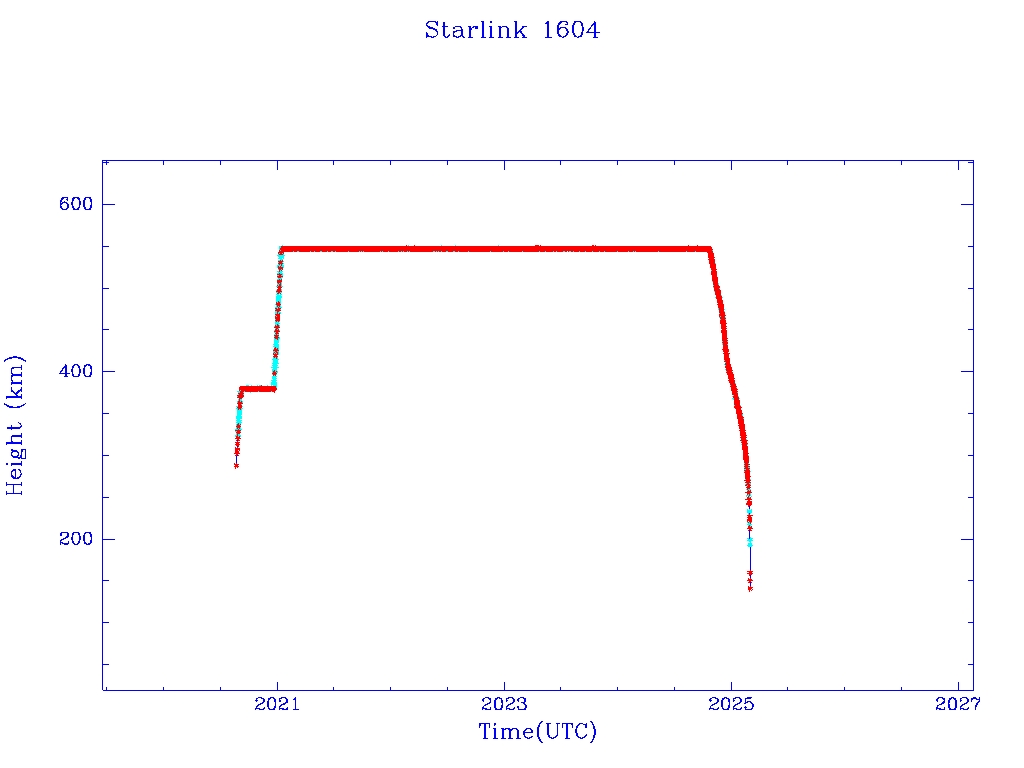 | Starlink 1604 | S46122 | R | 2020 Aug 18 | 2024 Dec 16? | 2025 Mar 1 |  |  |  |