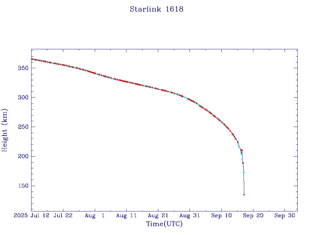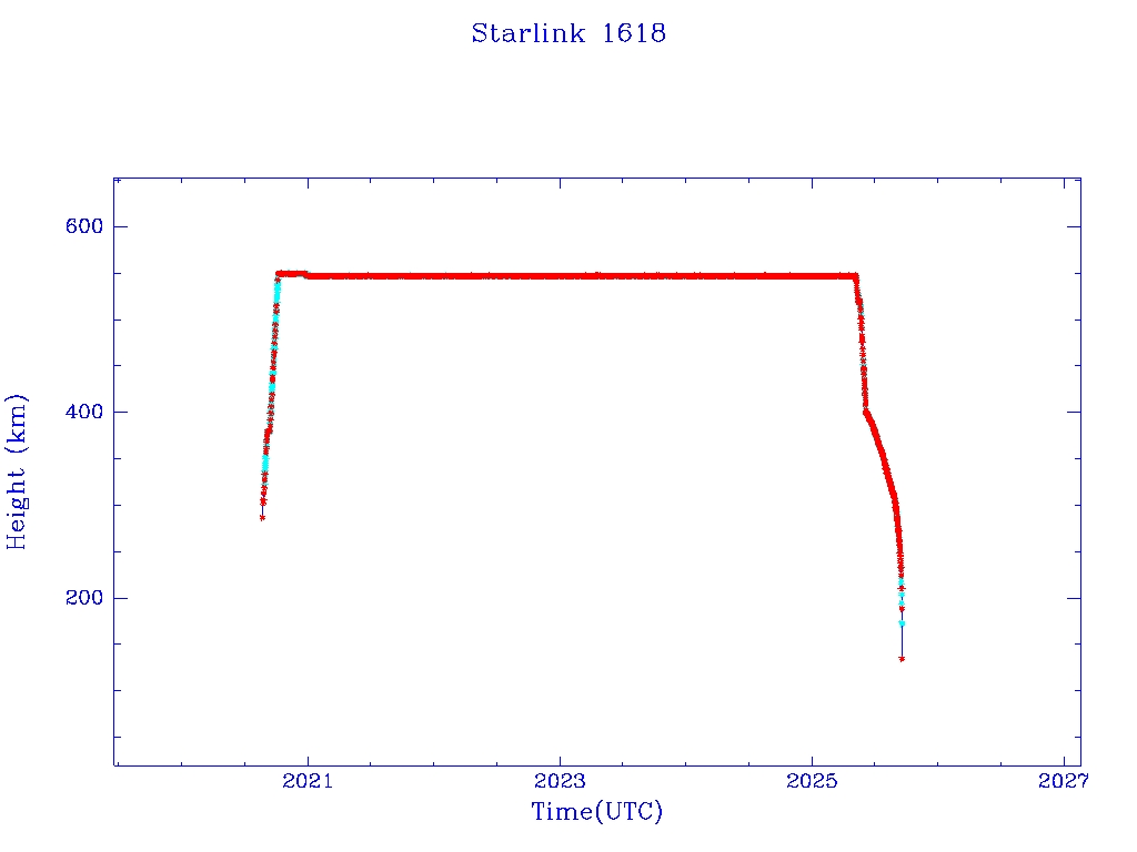 | Starlink 1618 | S46125 | R | 2020 Aug 18 | 2025 Jun 3? | 2025 Sep 17 |  |  |  |