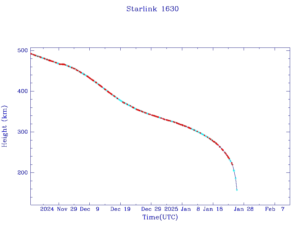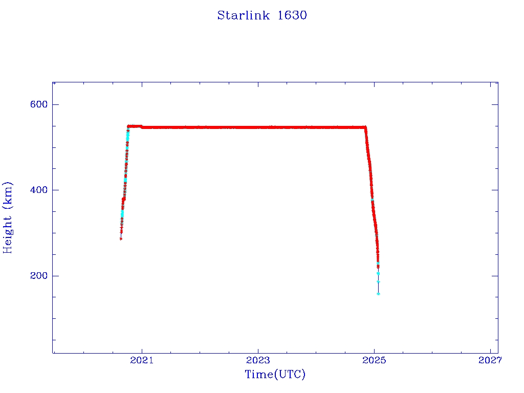 | Starlink 1630 | S46132 | R | 2020 Aug 18 | 2024 Dec 24? | 2025 Jan 25 |  |  |  |