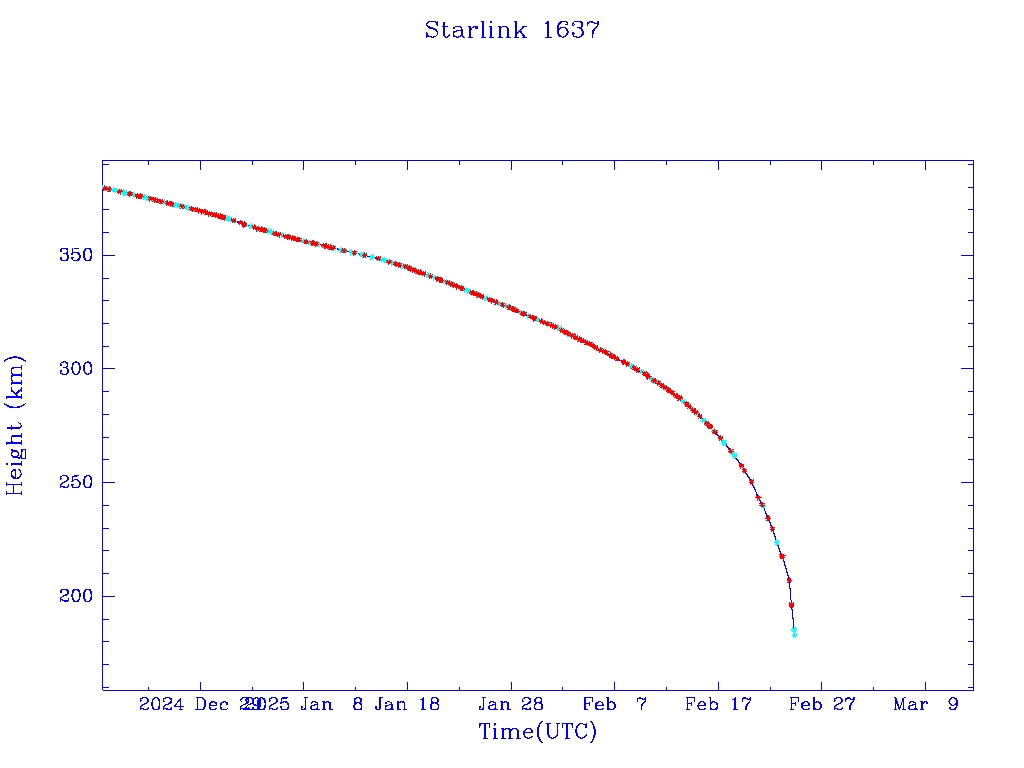 | Starlink 1637 | S46133 | R | 2020 Aug 18 | 2024 Nov 28? | 2025 Feb 24 |  |  |  |