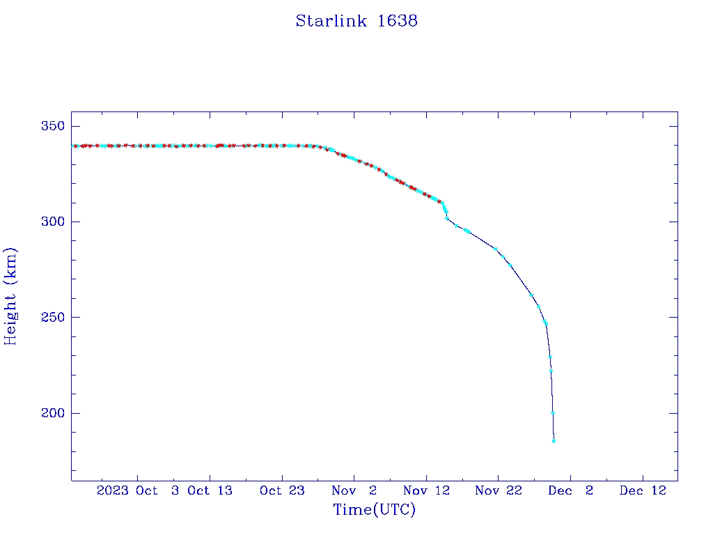 | Starlink 1638 | S46134 | R | 2020 Aug 18 | 2023 Nov 15? | 2023 Nov 29 |  |  |  |