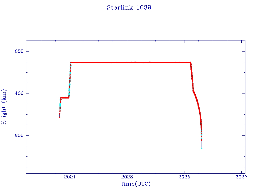 | Starlink 1639 | S46135 | R | 2020 Aug 18 | 2025 Apr 25? | 2025 Aug 9 |  |  |  |