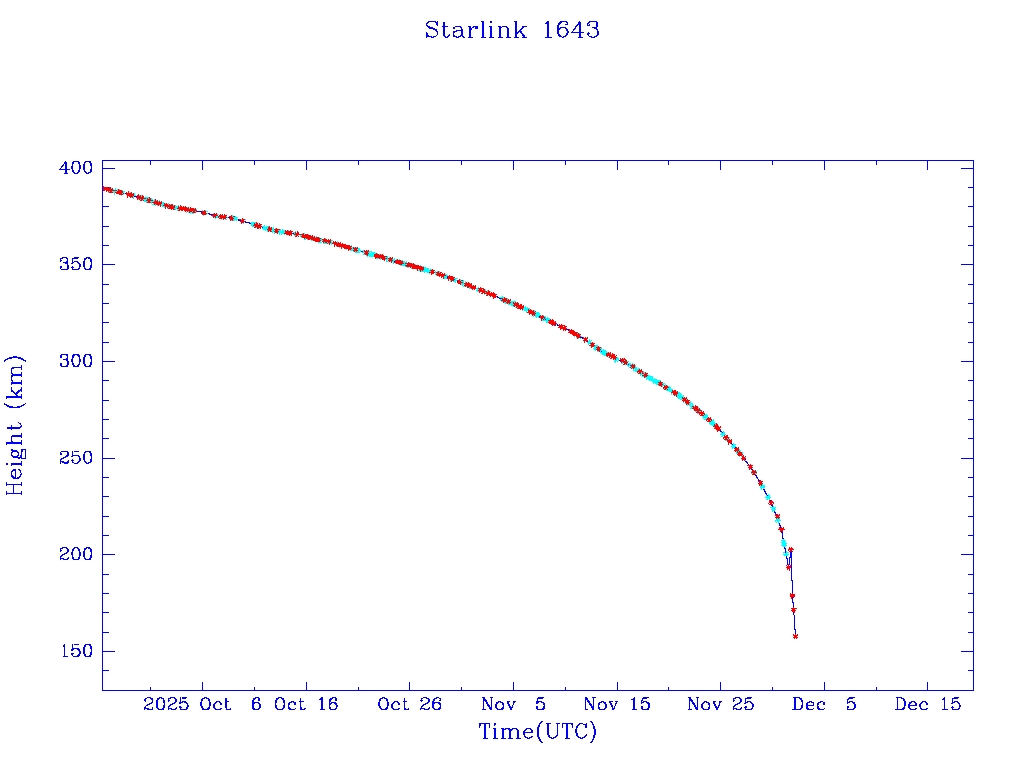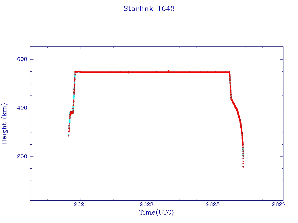 | Starlink 1643 | S46136 | R | 2020 Aug 18 | 2025 Oct 2? | 2025 Dec 2 |  |  |  |