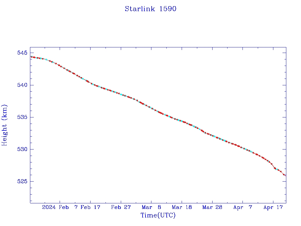 | Starlink 1590 | S46138 | M | 2020 Aug 18 | 2023 Dec 23 | 2024 Apr 4 |  |  |  |