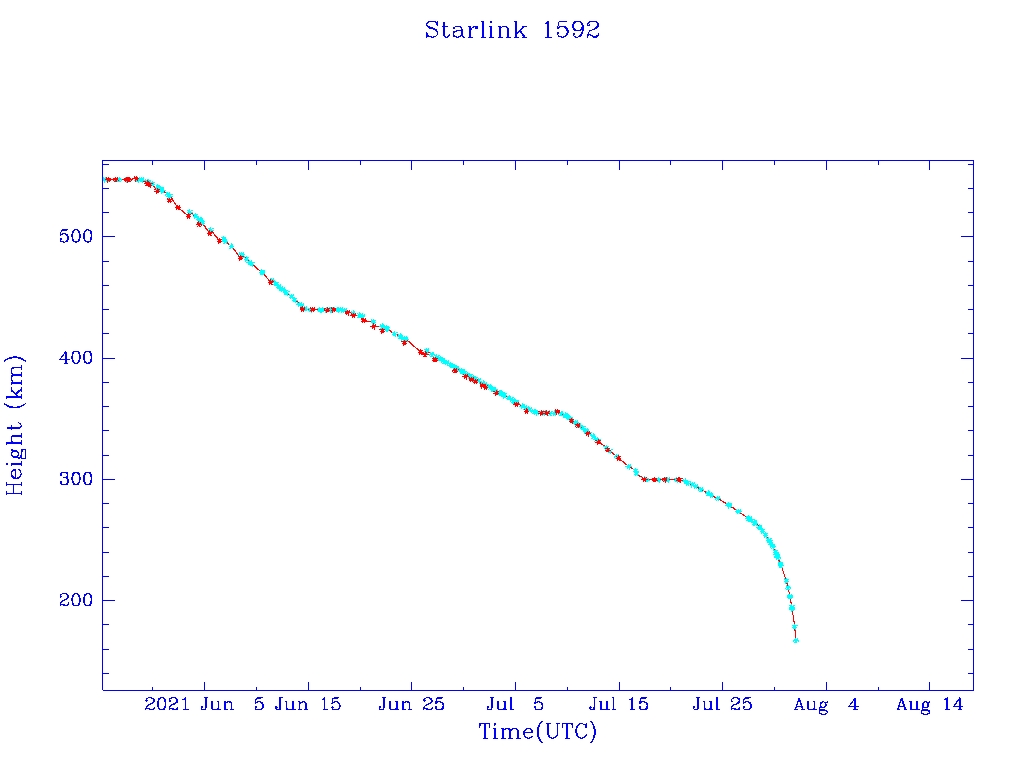 | Starlink 1592 | S46139 | R | 2020 Aug 18 | 2021 Jul 21 | 2021 Aug 1 |  |  |  |